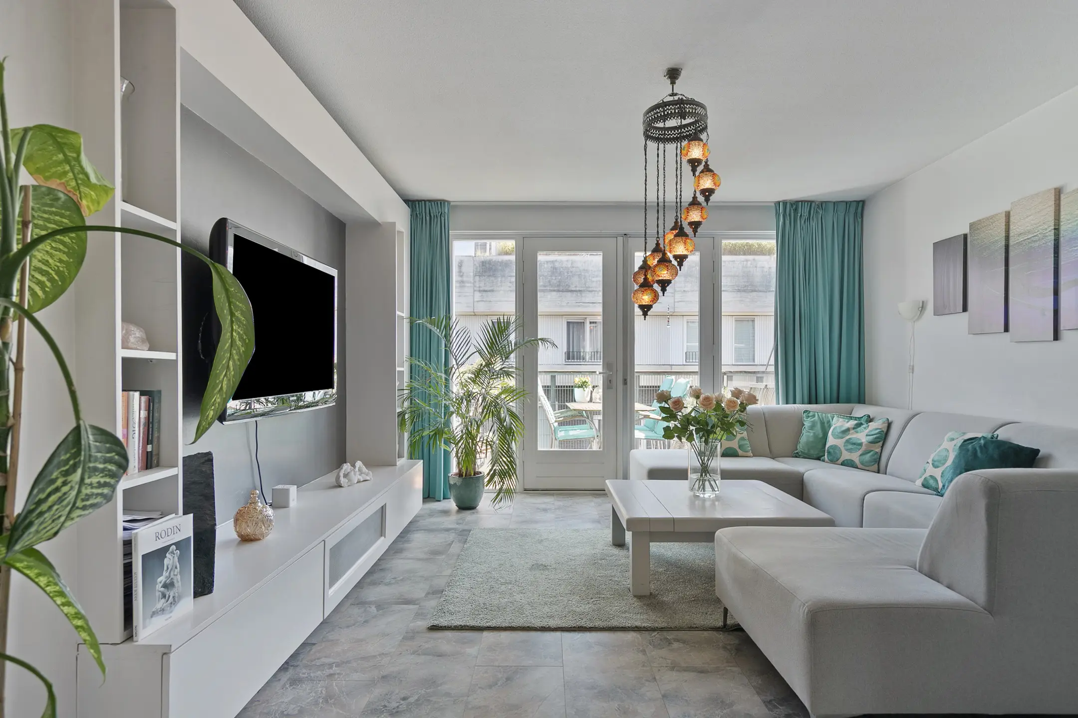 – Lichte woonkamer met openslaande deuren