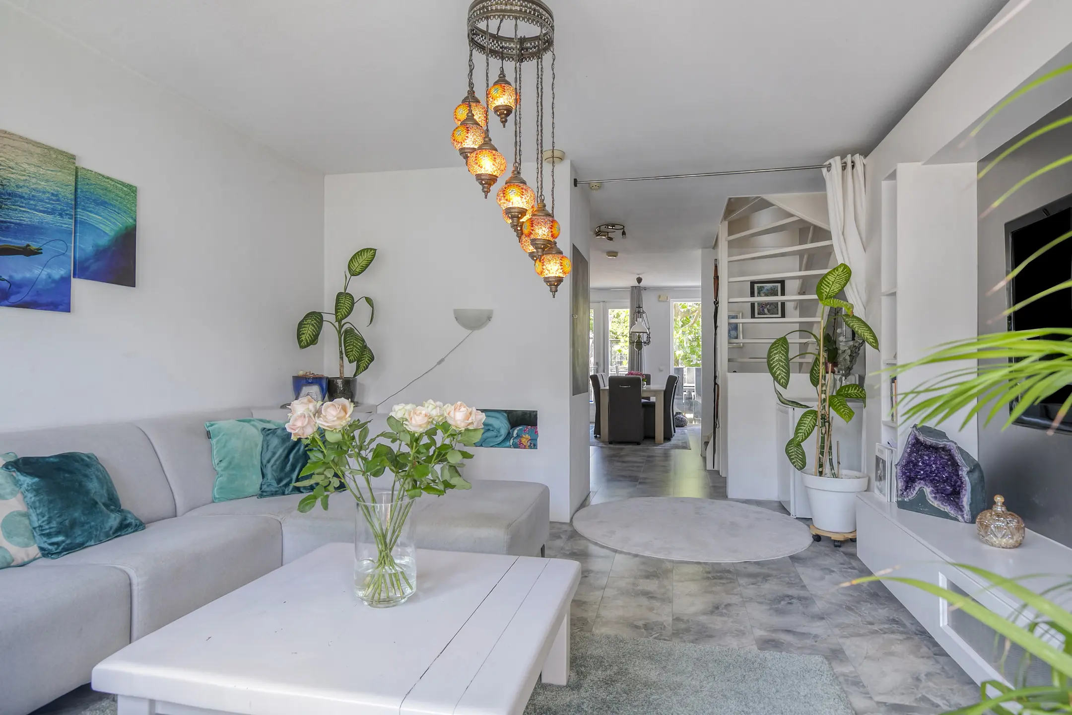 De lichte, uitnodigende woonkamer heeft openslaande deuren naar het terras aan de voorzijde – perfect voor een loungehoek of om buiten te dineren. Op de bovenverdieping bevindt zich een ruim dakterras – ideaal om te zonnen, tuinieren of ontspannen met een prachtig uitzicht over het water en de omgeving.