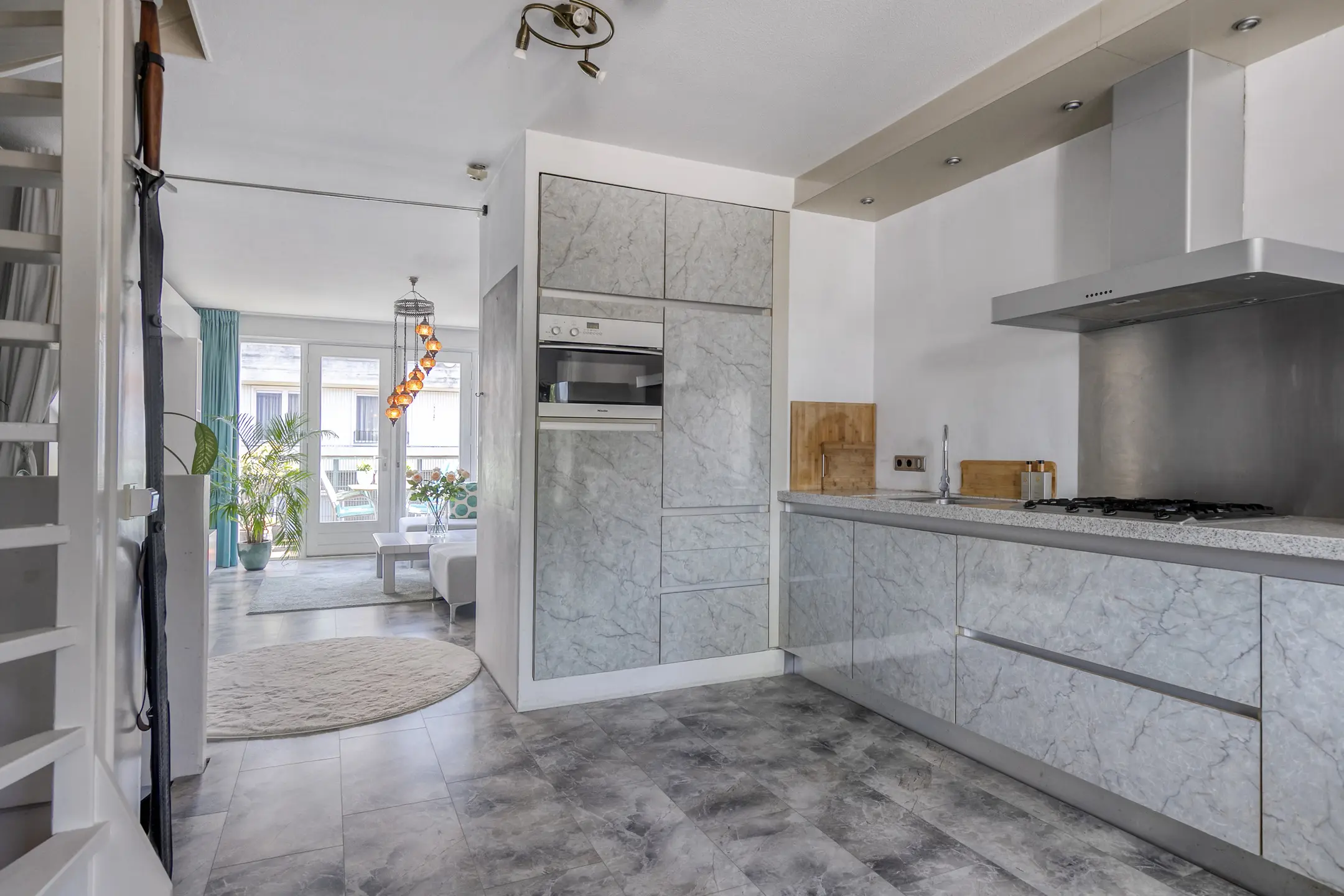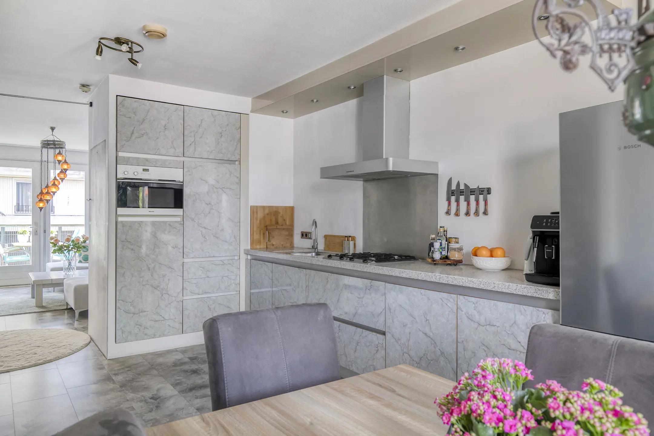 – Moderne open keuken met inbouwapparatuur
