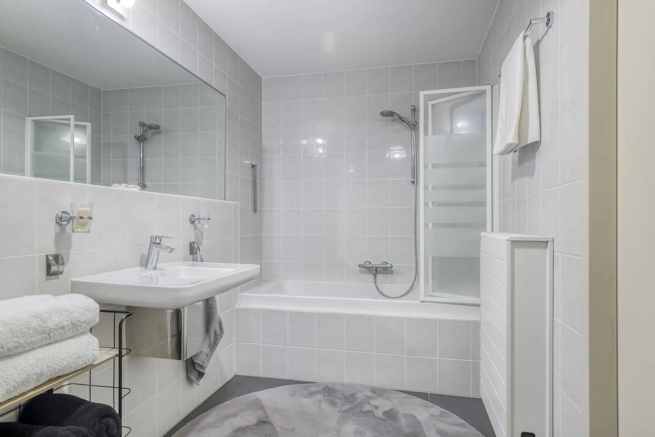 – Luxurious bathroom with bathtub & walk-in shower