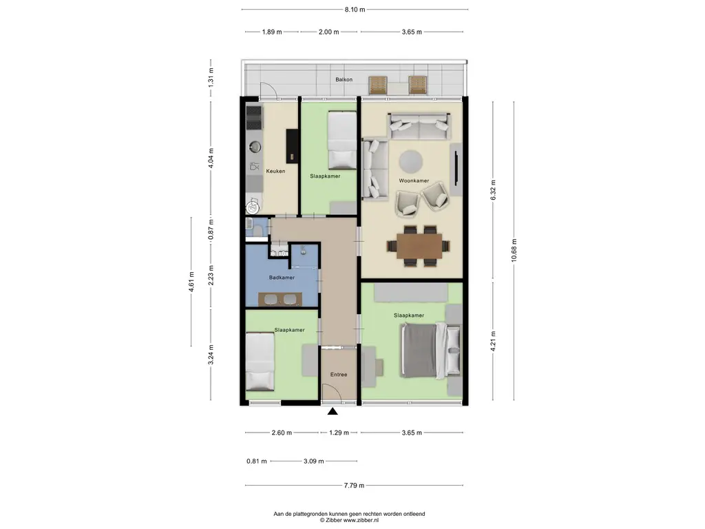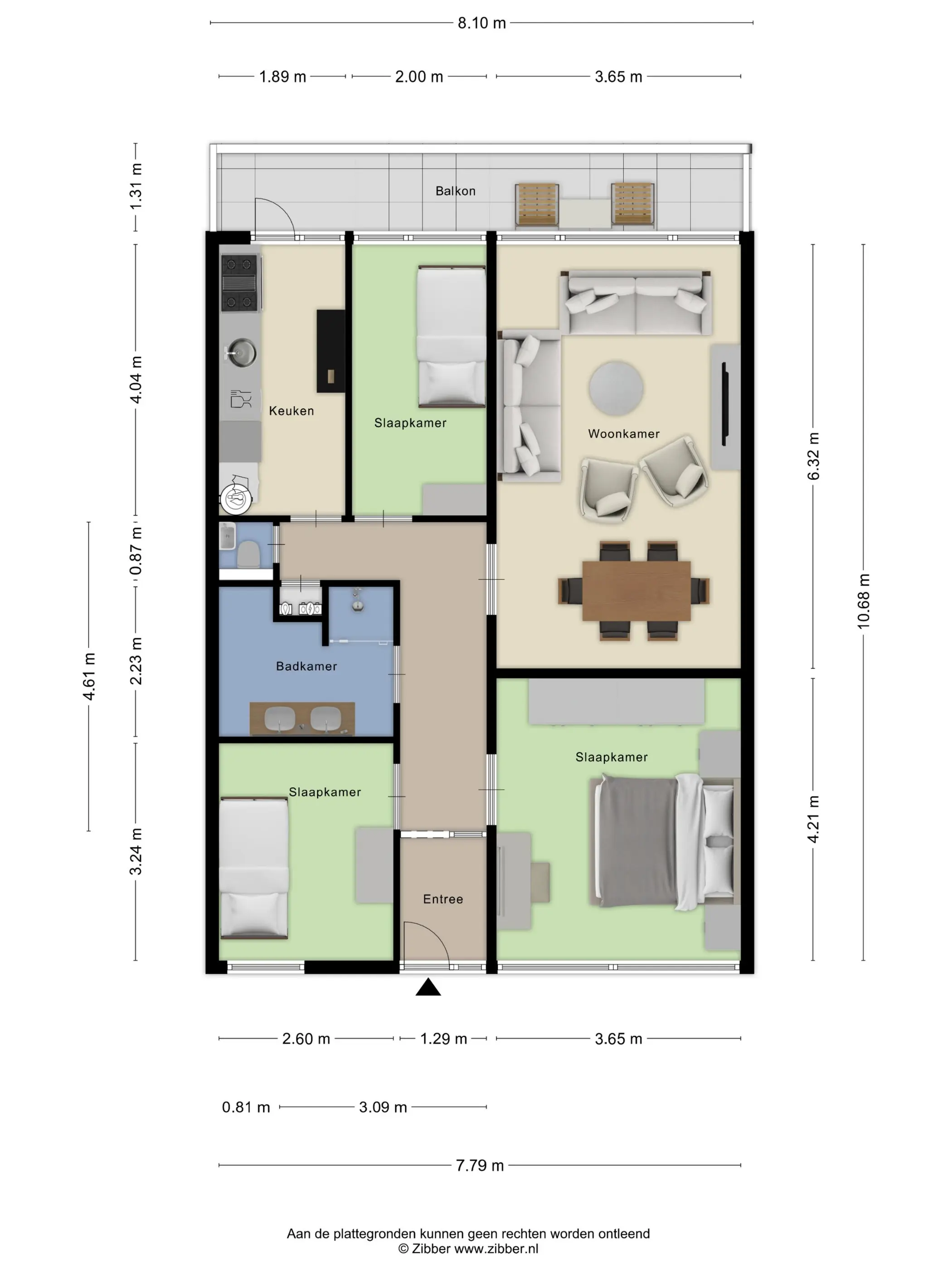 Het appartement beschikt over drie slaapkamers, die geheel naar eigen wens zijn in te richten. Dankzij de grote ramen profiteren alle kamers van een prettige natuurlijke lichtinval.