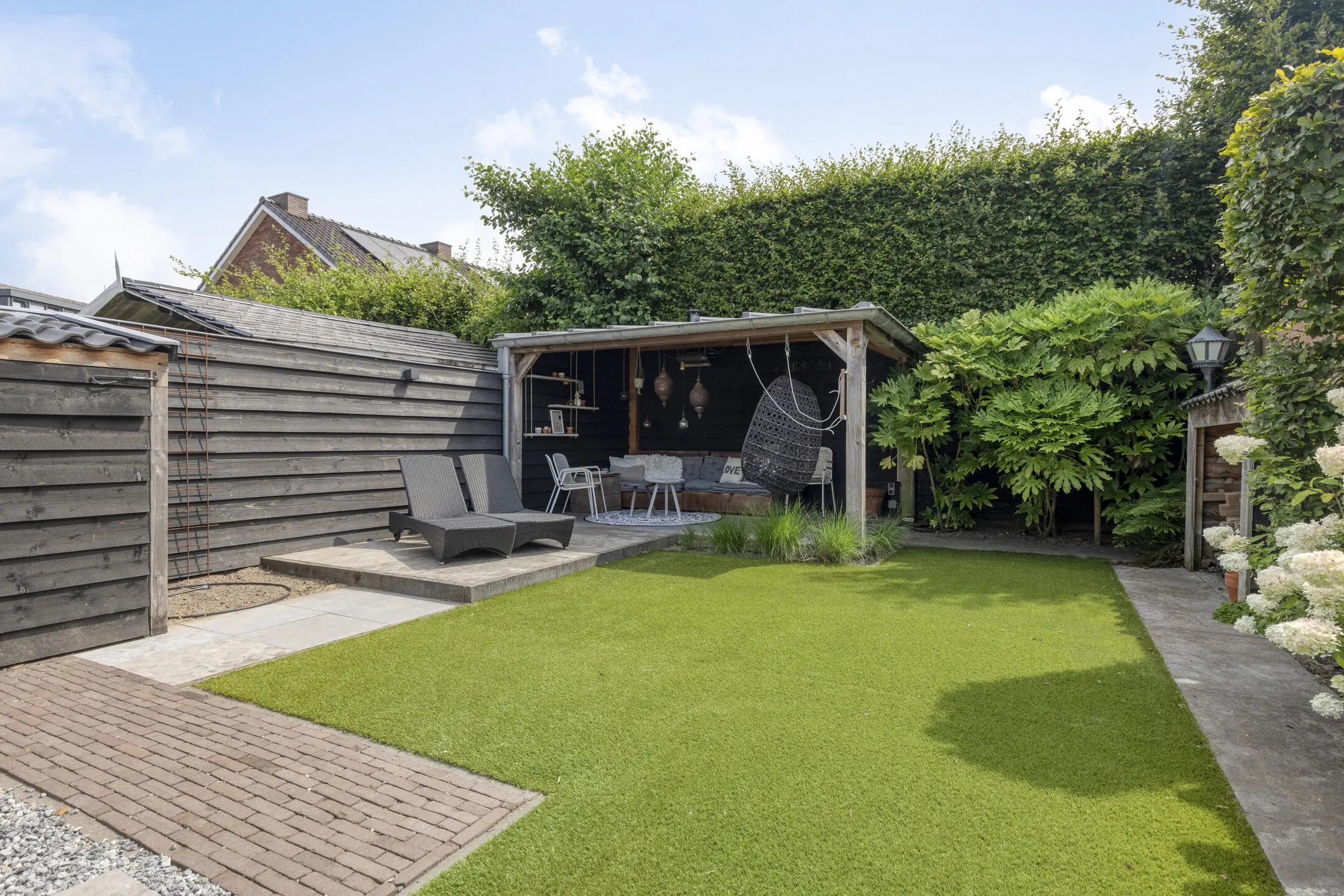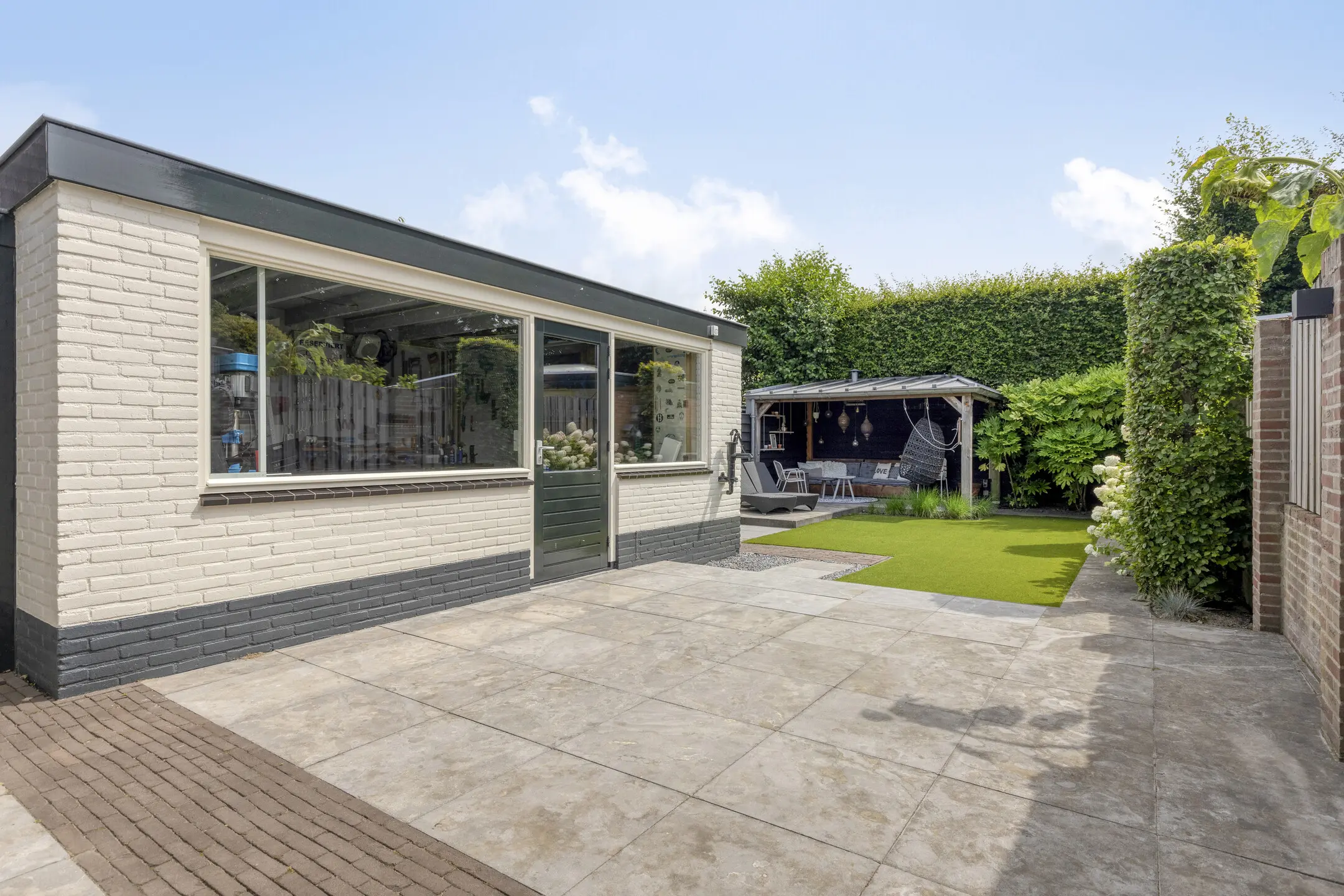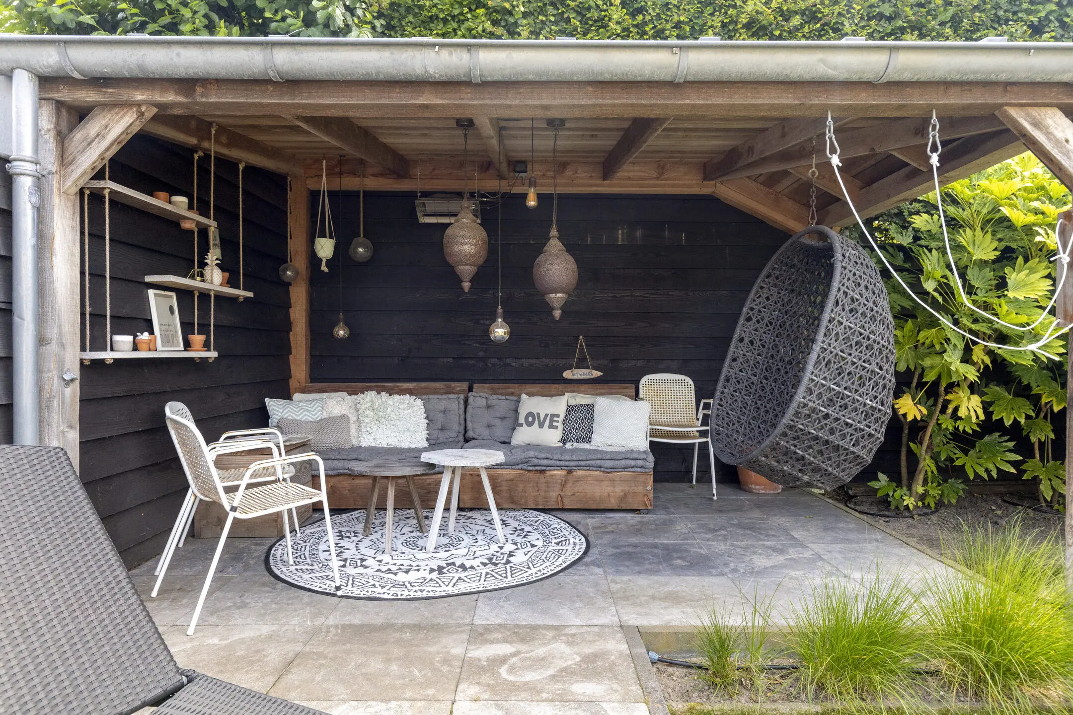 Naast de comfortabele leefruimtes binnen, is ook buiten aan alles gedacht. In de tuin vind je een fraaie overkapping, ideaal voor lange zomeravonden met vrienden of knusse momenten in de herfst. Dankzij de beschutte ligging kun je hier vrijwel het hele jaar door genieten van je eigen buitenruimte.