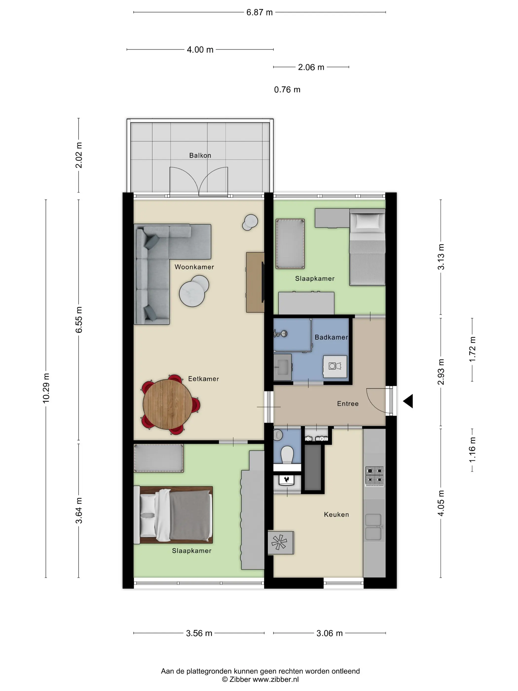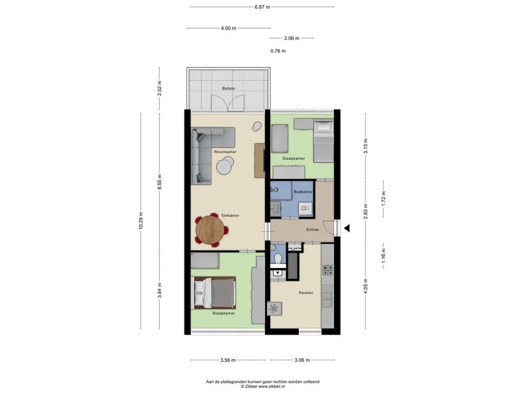 De woning beschikt over twee slaapkamers: