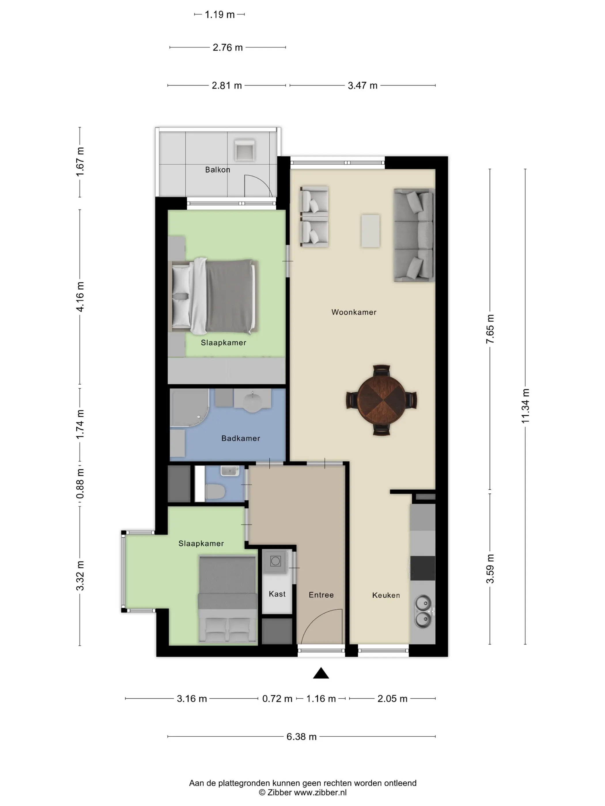 Aantal kamers: 3 (waarvan 2 slaapkamers)