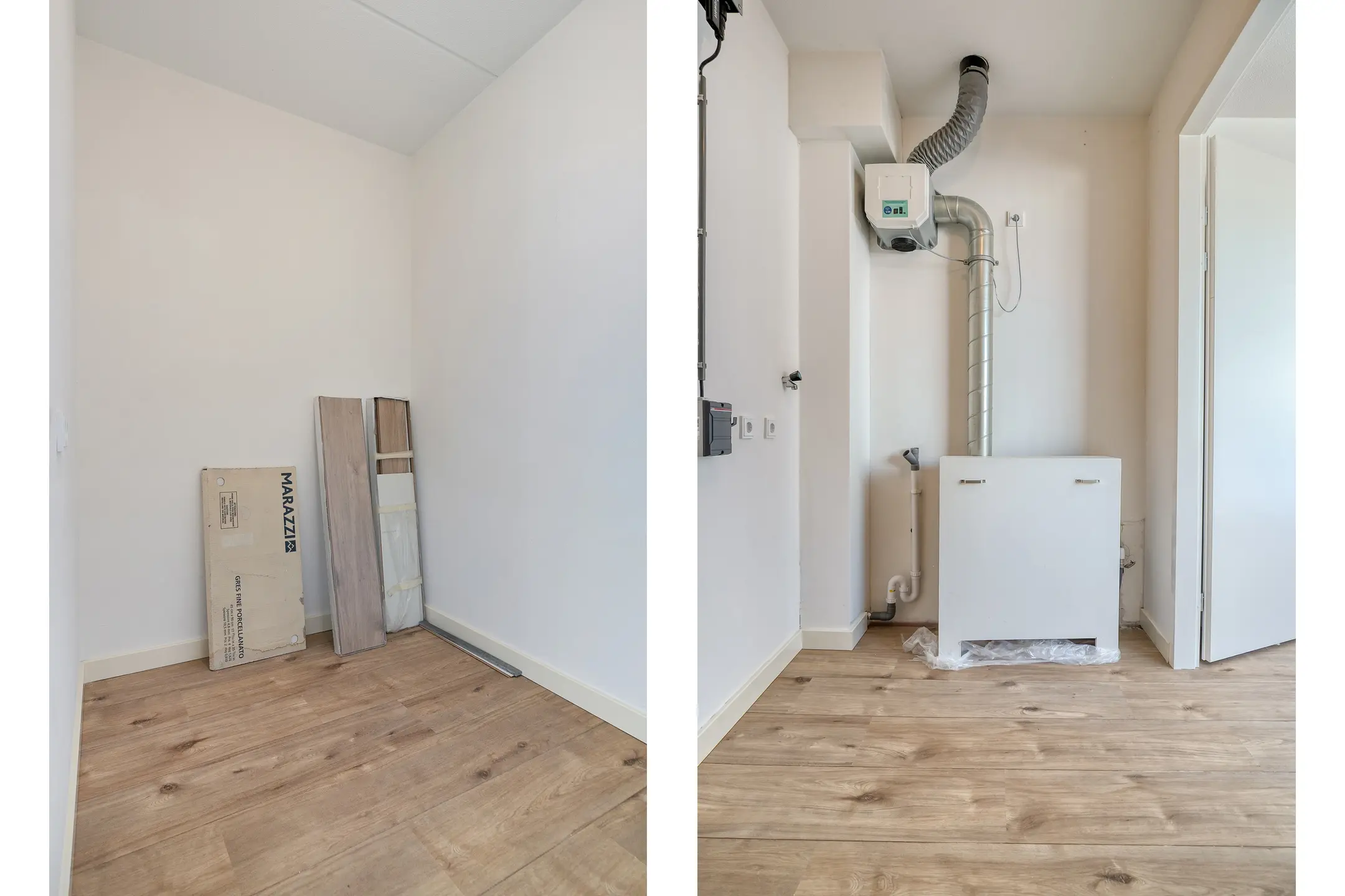 Here you’ll find a generous fourth room, ideal as a home office, hobby space, or guest room. There's also a separate laundry room with connections for a washing machine and dryer. Trough a spacious door with large windows you have acces to the spacious rooftop terrace, the perfect private spot to unwind, soak up the sun, or entertain.