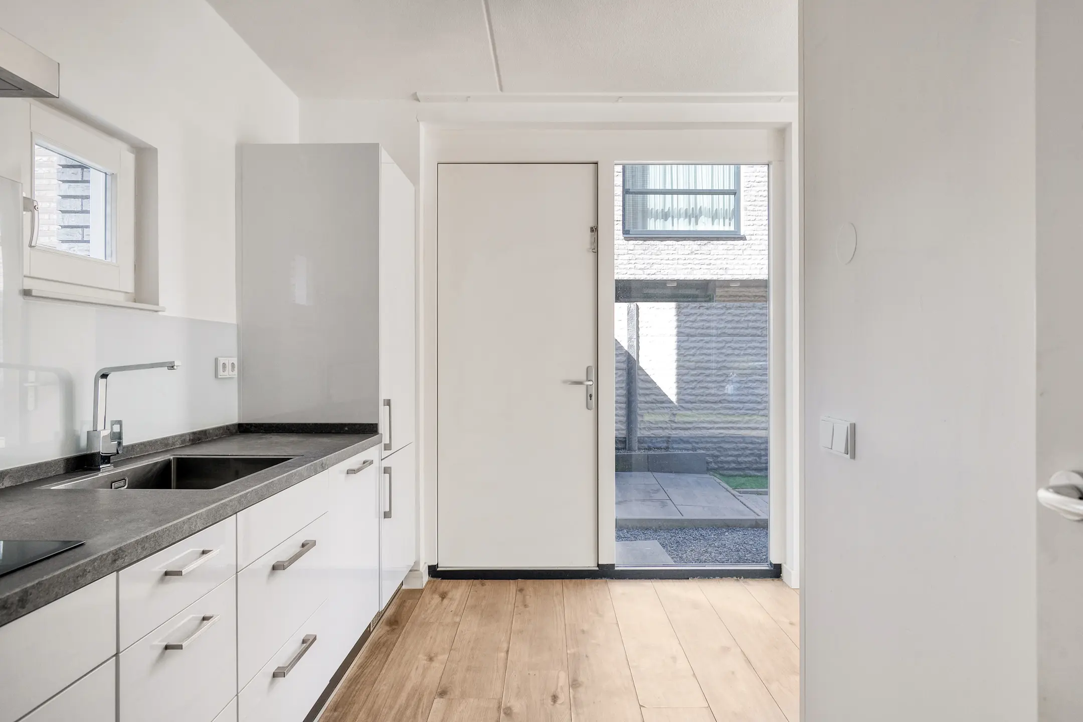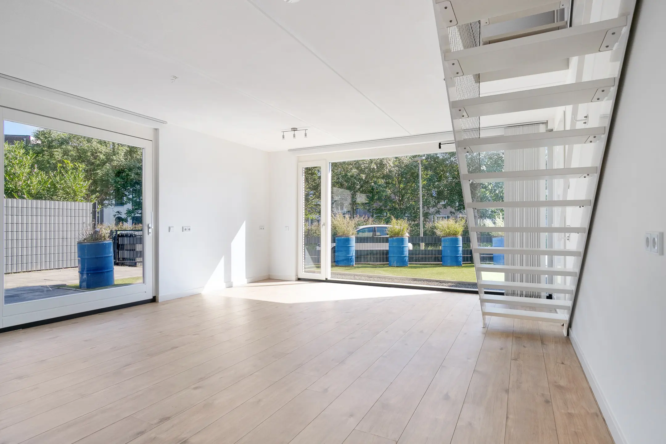 Je betreedt de woning via een ruime hal met modern toilet en meterkast. De woonkamer is ruim en licht, met grote ramen en 2 schuifpuien die uitzicht geven op de tuin rondom. De open keuken is aan de achterzijde gesitueerd en voorzien van hoogwaardige apparatuur, waaronder een inductiekookplaat, afzuigkap, magnetron, combi-oven, vaatwasser en koel-/vriescombinatie. Vanuit de keuken is er een toegangsdeur naar de tuin, waardoor binnen- en buitenleven naadloos in elkaar overlopen. Aangrenzend aan de keuken bevindt zich een praktische gesloten bergruimte voor extra opbergruimte.