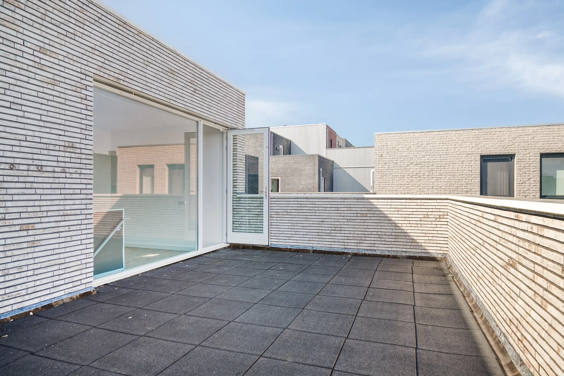 Groot dakterras op de tweede verdieping met toegang via schuifpui