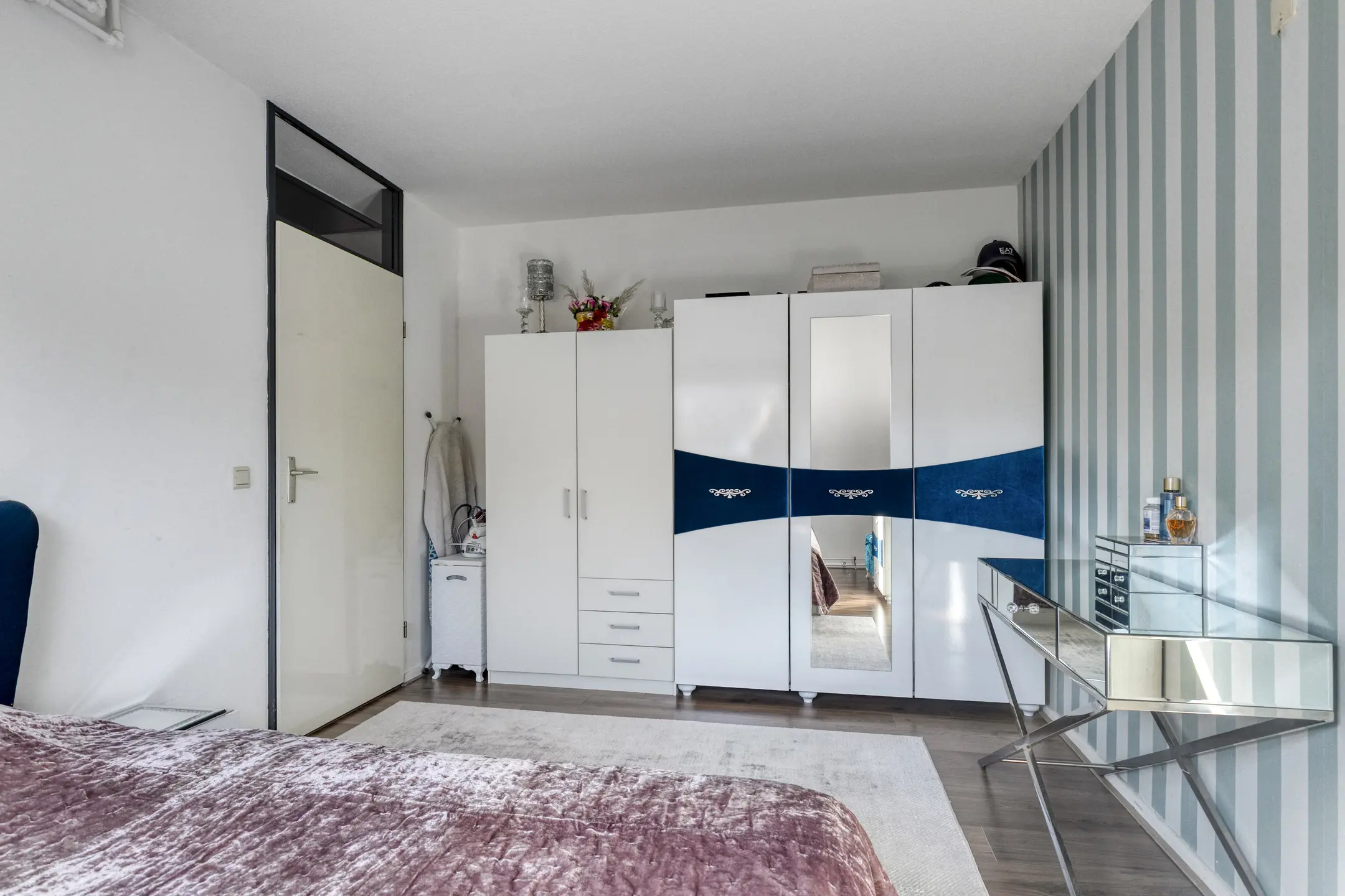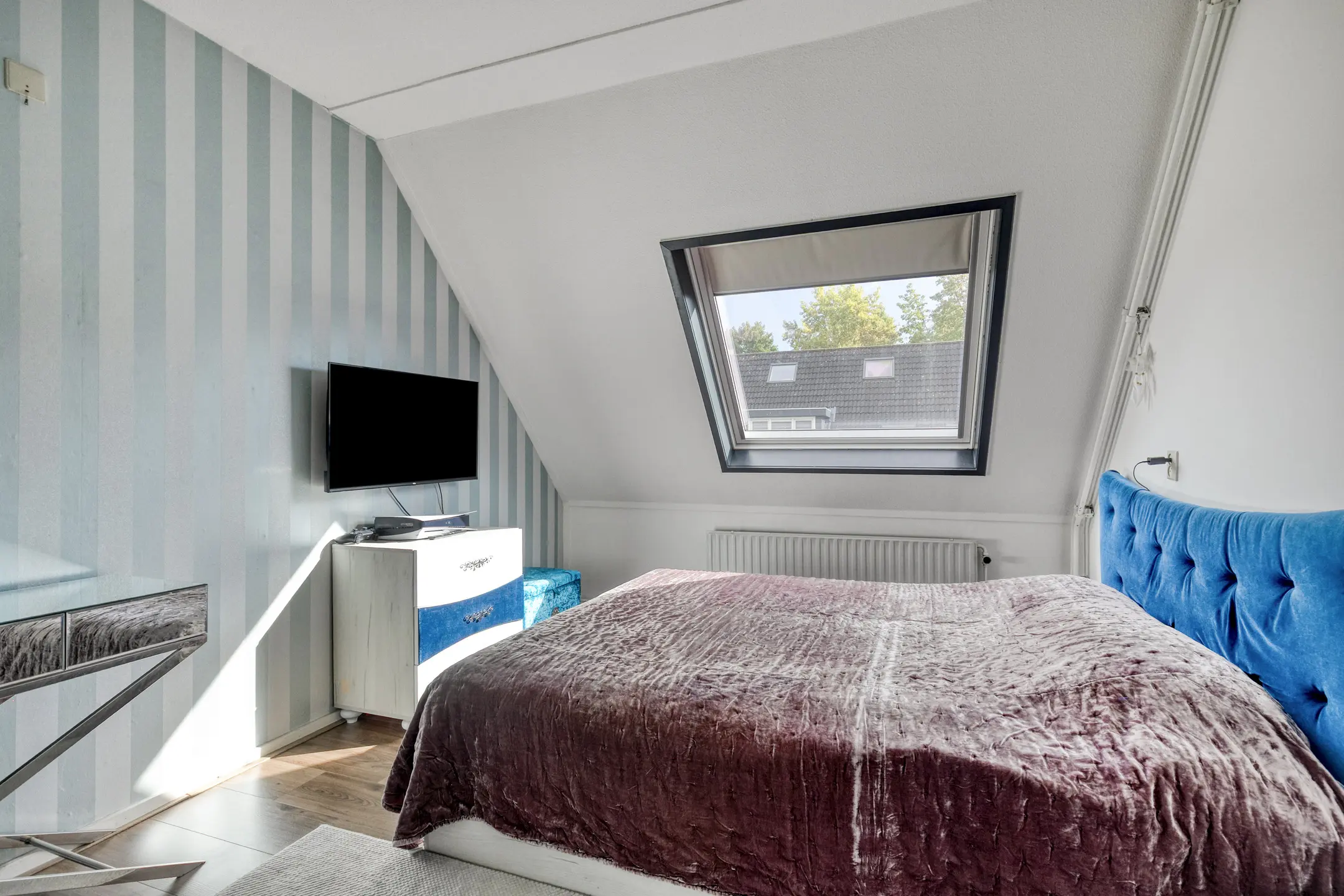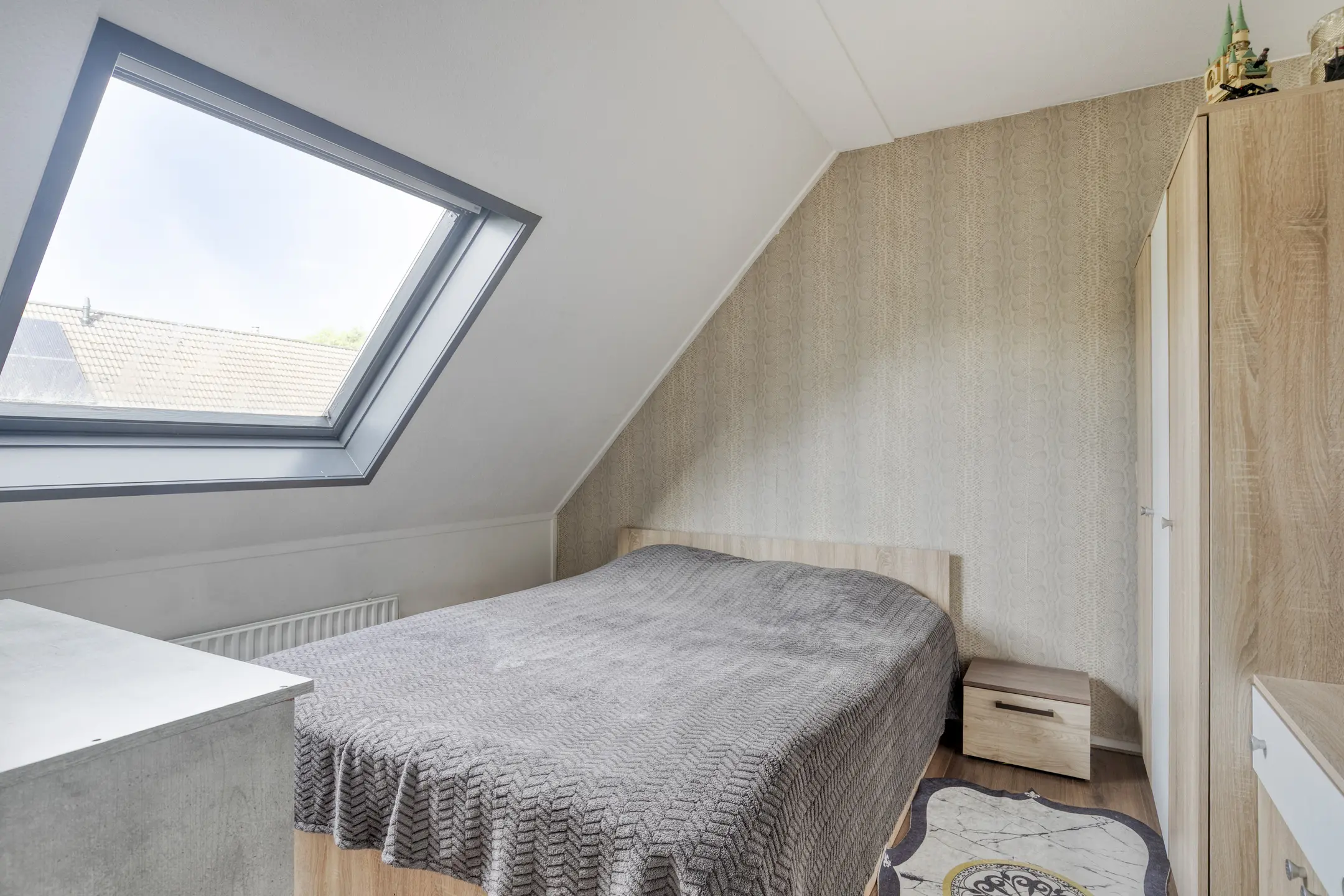 Op de eerste verdieping zijn drie goed bemeten slaapkamers met voldoende bergruimte. Daarnaast is er een tweede badkamer, waardoor de ochtendspits in een gezin een stuk soepeler verloopt.