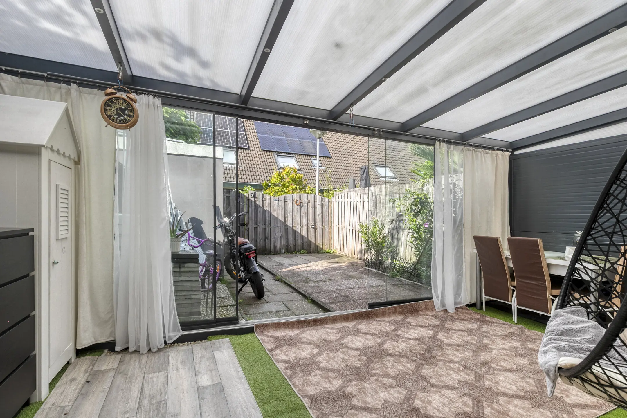 De lichte entree leidt naar een ruime woonkamer met veel natuurlijk licht. De moderne keuken is een droom voor kookliefhebbers en biedt directe toegang tot de veranda – dé plek voor een ontspannen ontbijt of een gezellige borrel. Vanuit de veranda stap je de onderhoudsvriendelijke tuin in.