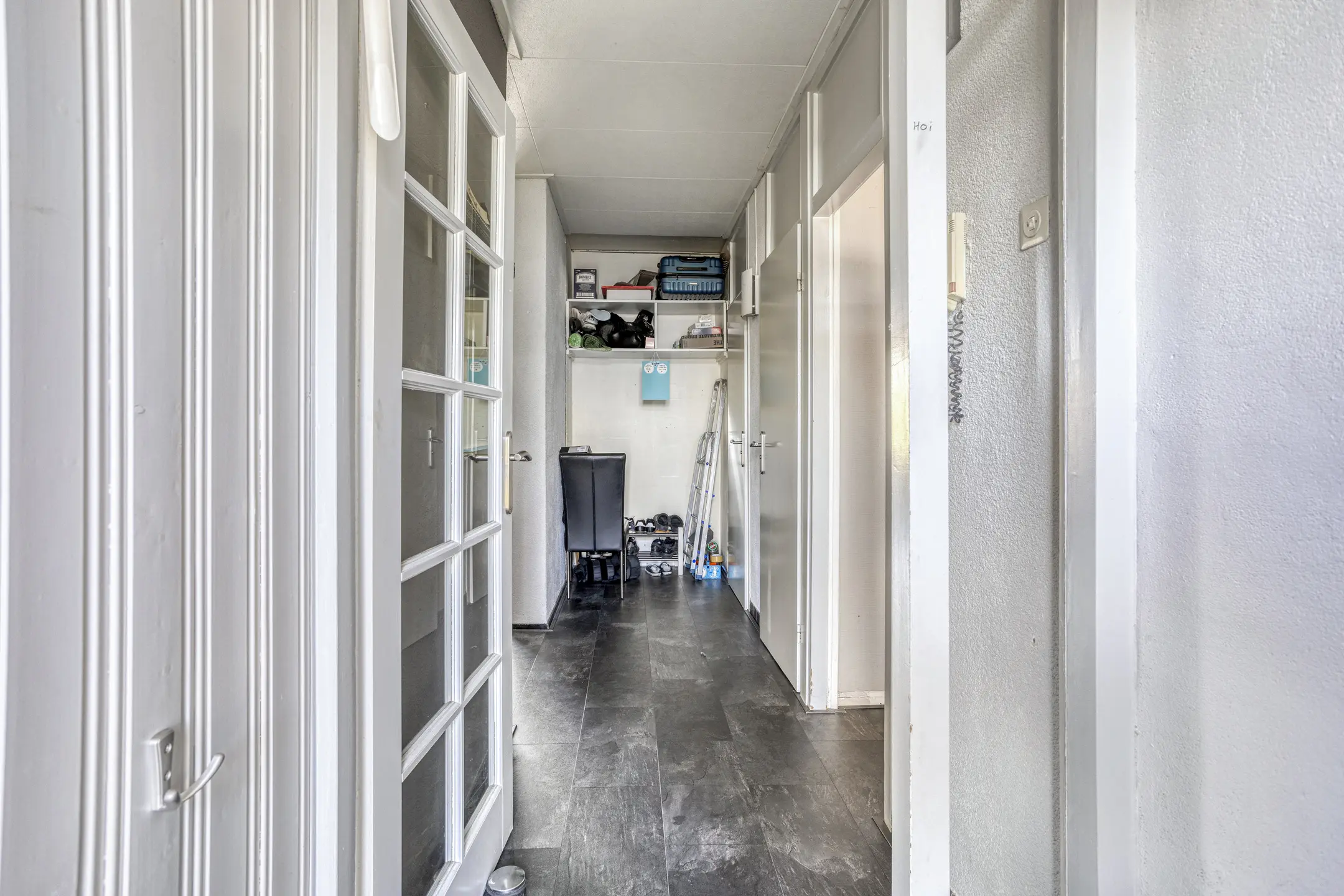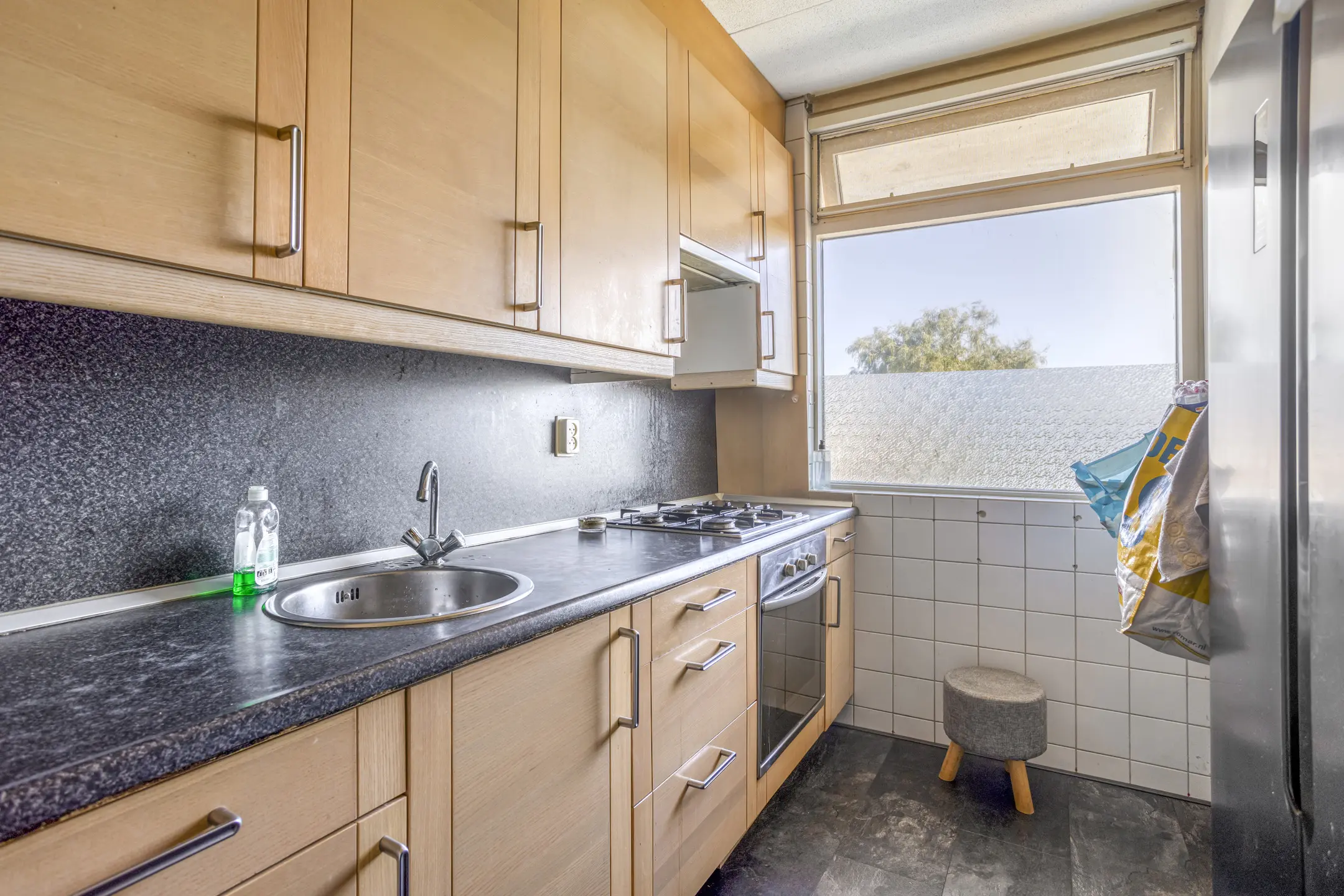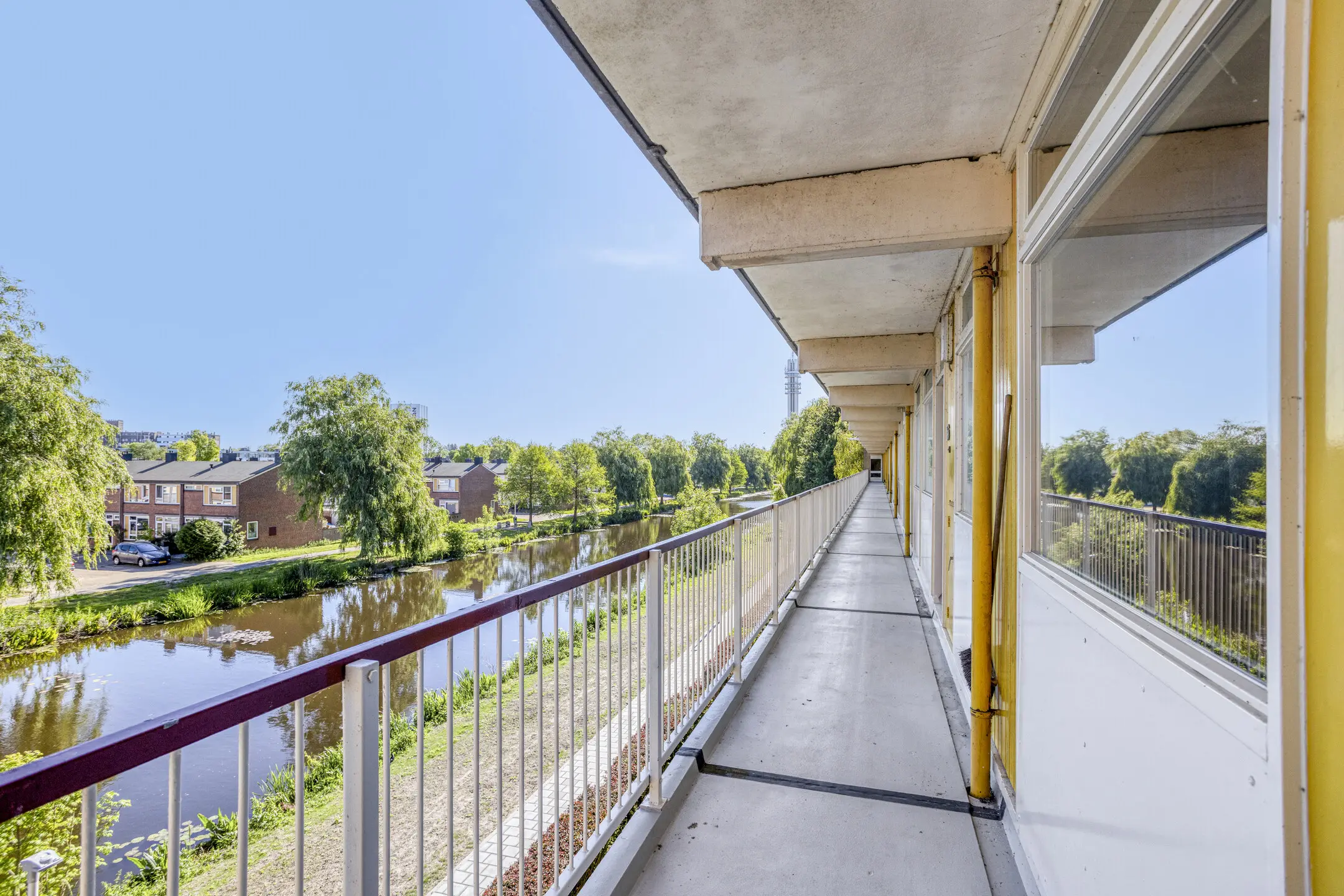 Bij binnenkomst via de hal vind je aan de voorzijde de dichte keuken met veel werkruimte en aansluitend een apart toilet en badkamer. De ruime woonkamer is heerlijk licht dankzij de grote raampartijen en biedt toegang tot het balkon, gelegen op het oosten. Verder zijn er drie slaapkamers van verschillende afmetingen – ideaal als kinderkamers, werkkamer of hobbyruimte.