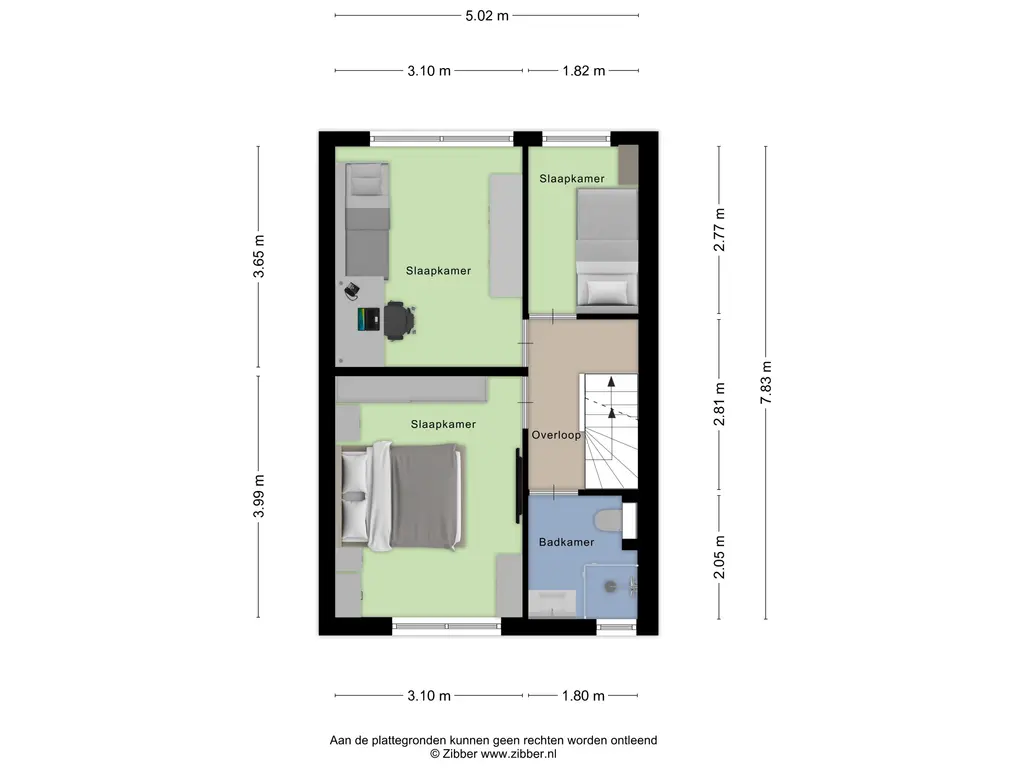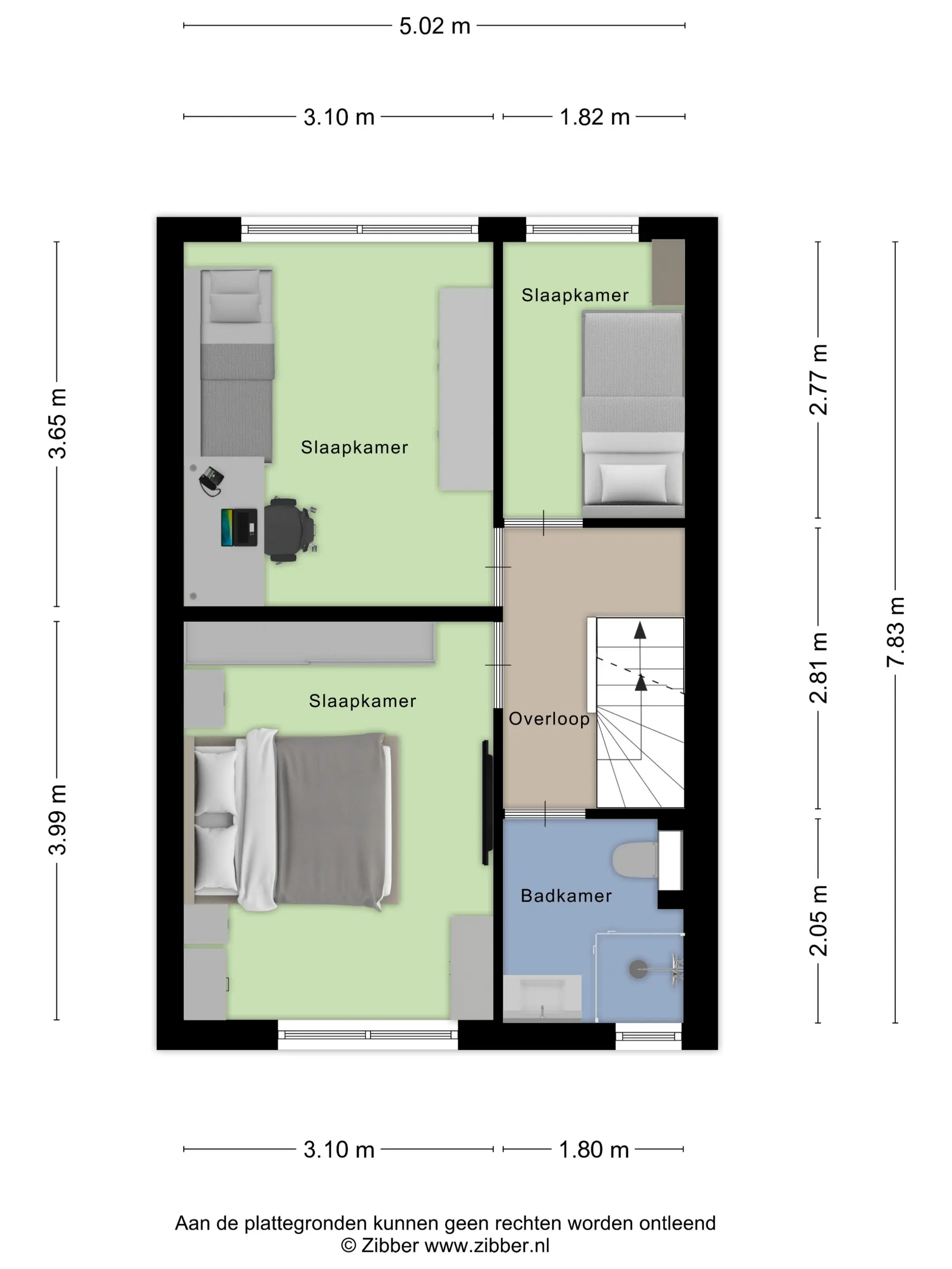 Hier bevinden zich drie goed bemeten slaapkamers. De moderne badkamer beschikt over een ruime douche, wastafelmeubel en een tweede toilet.
