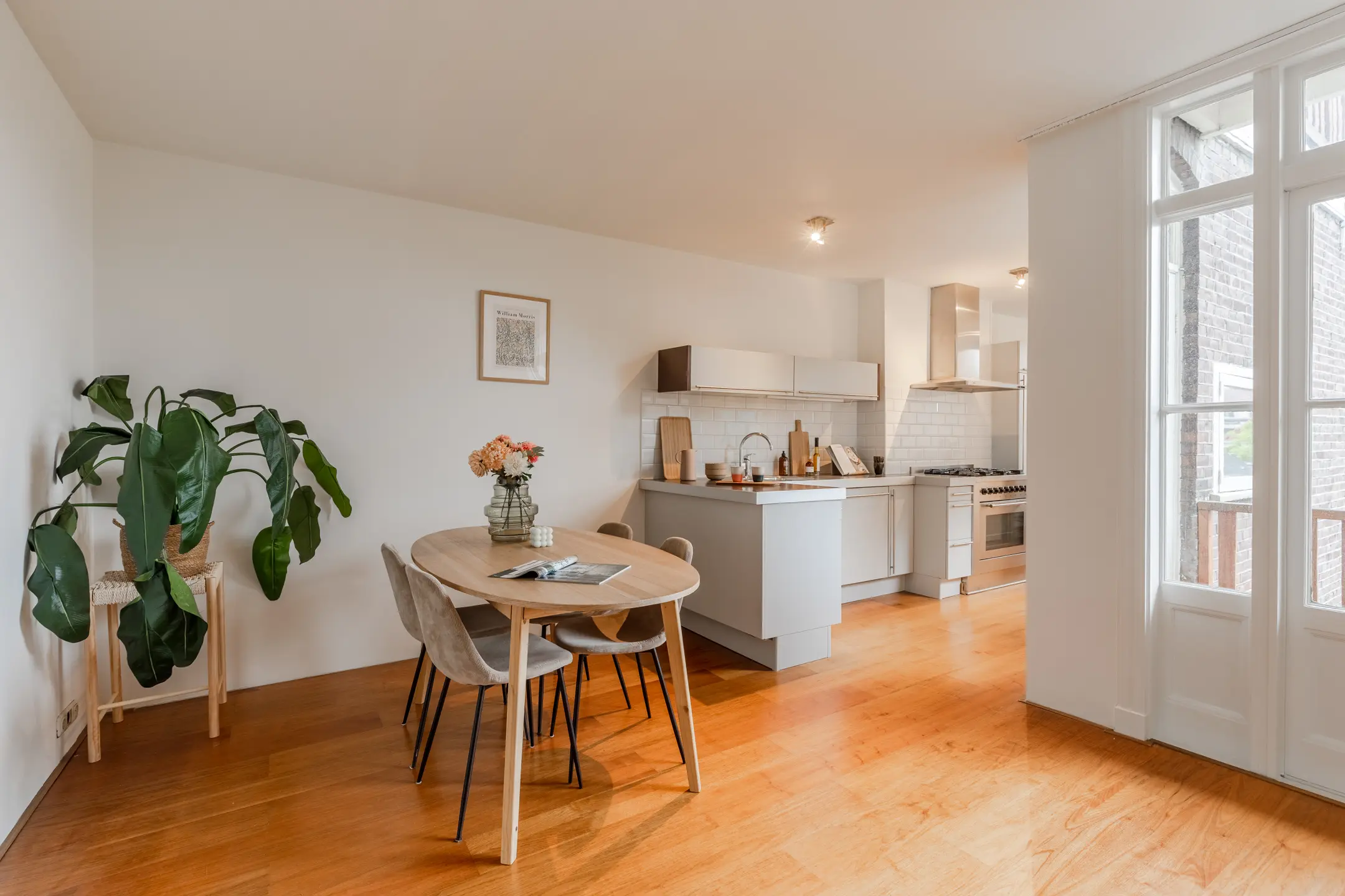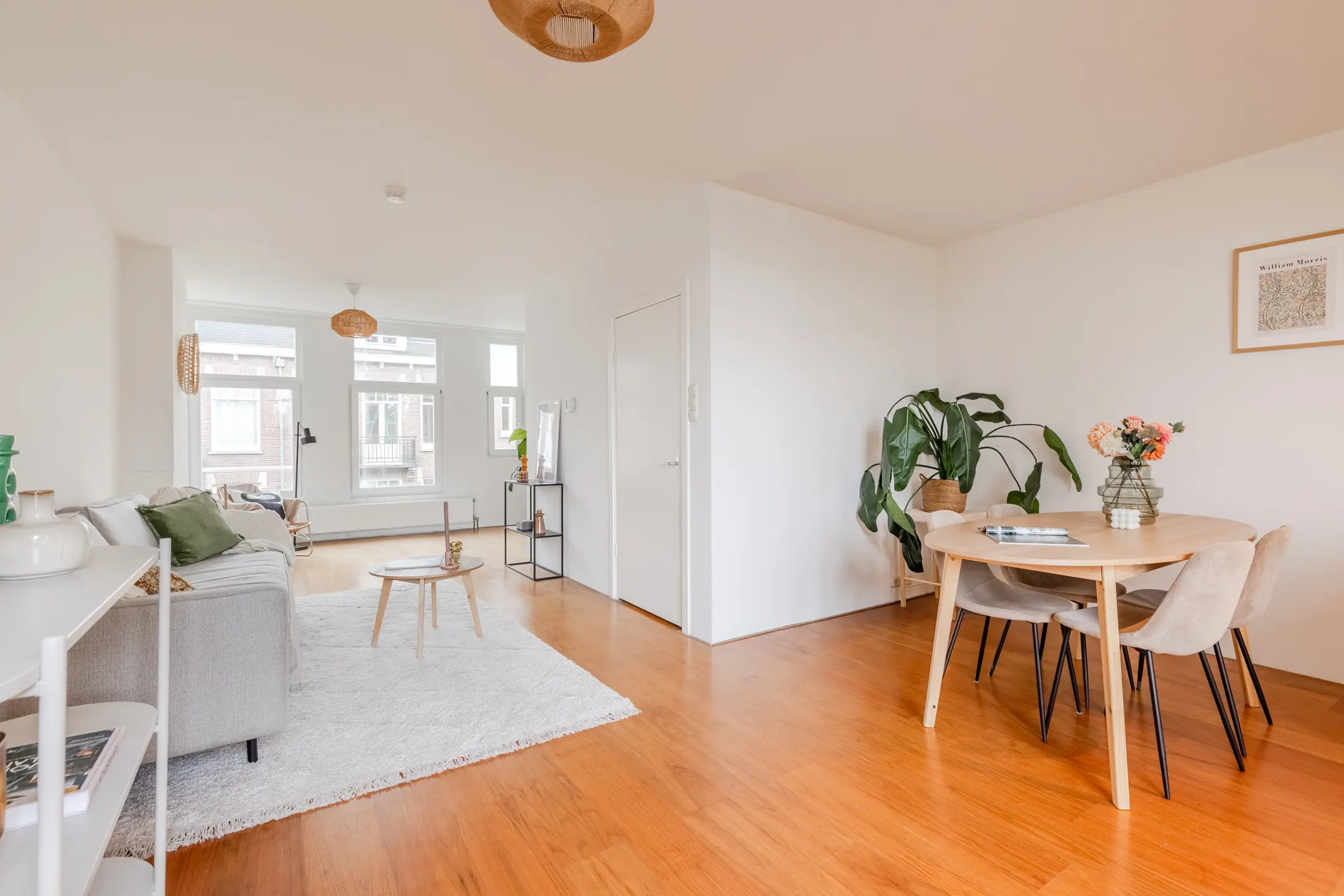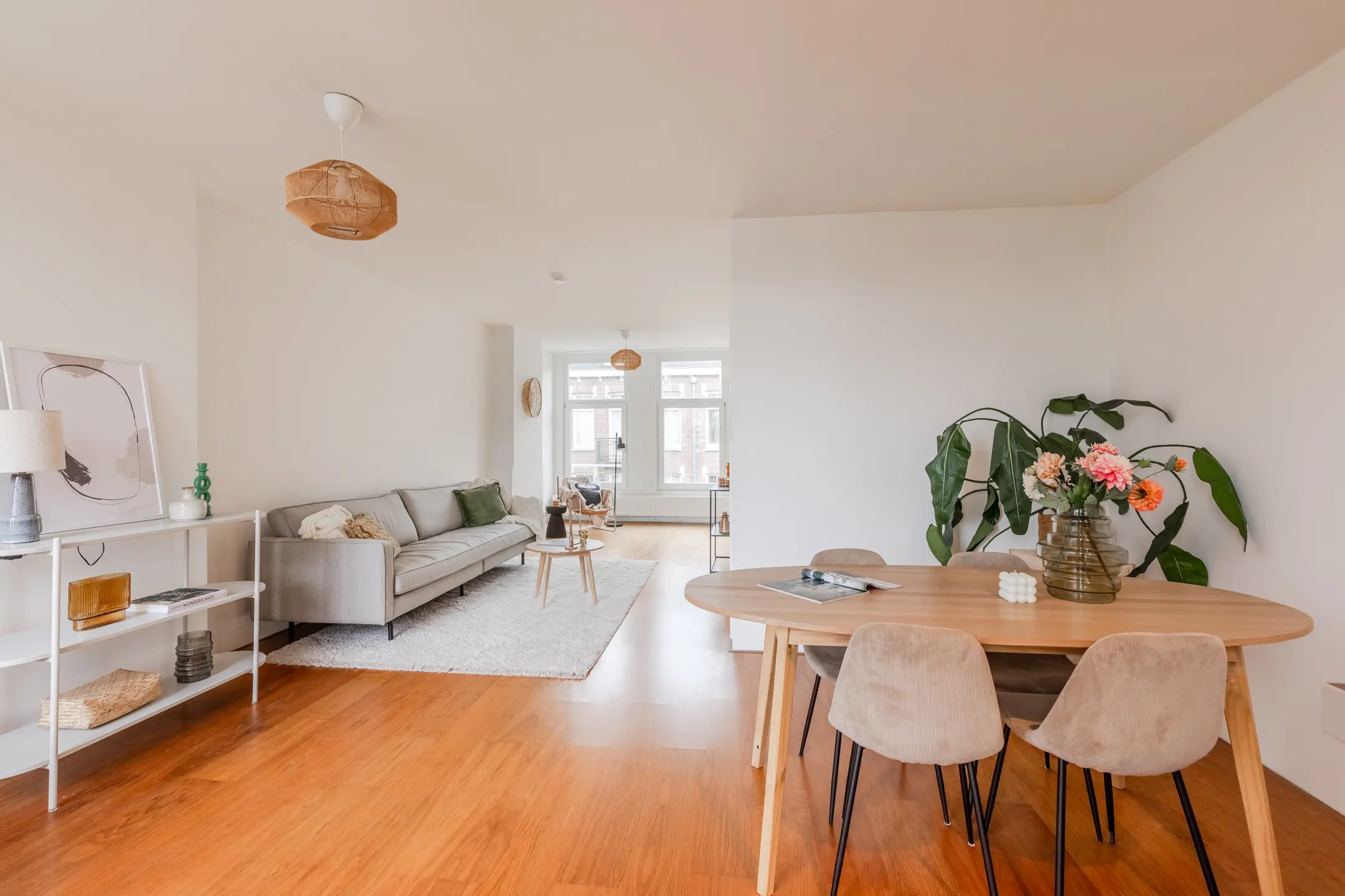 - A spacious living room at the front, with large windows that let in an abundance of natural light