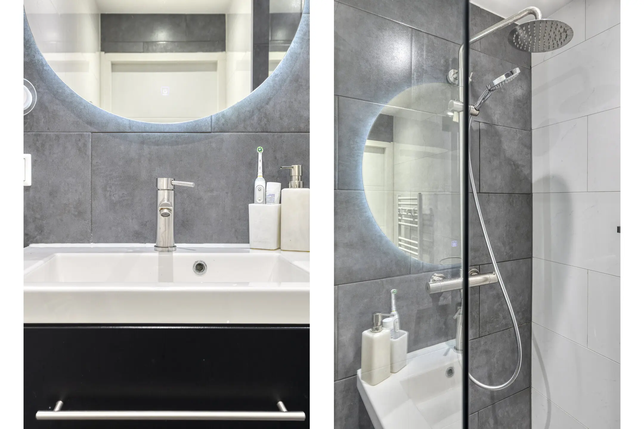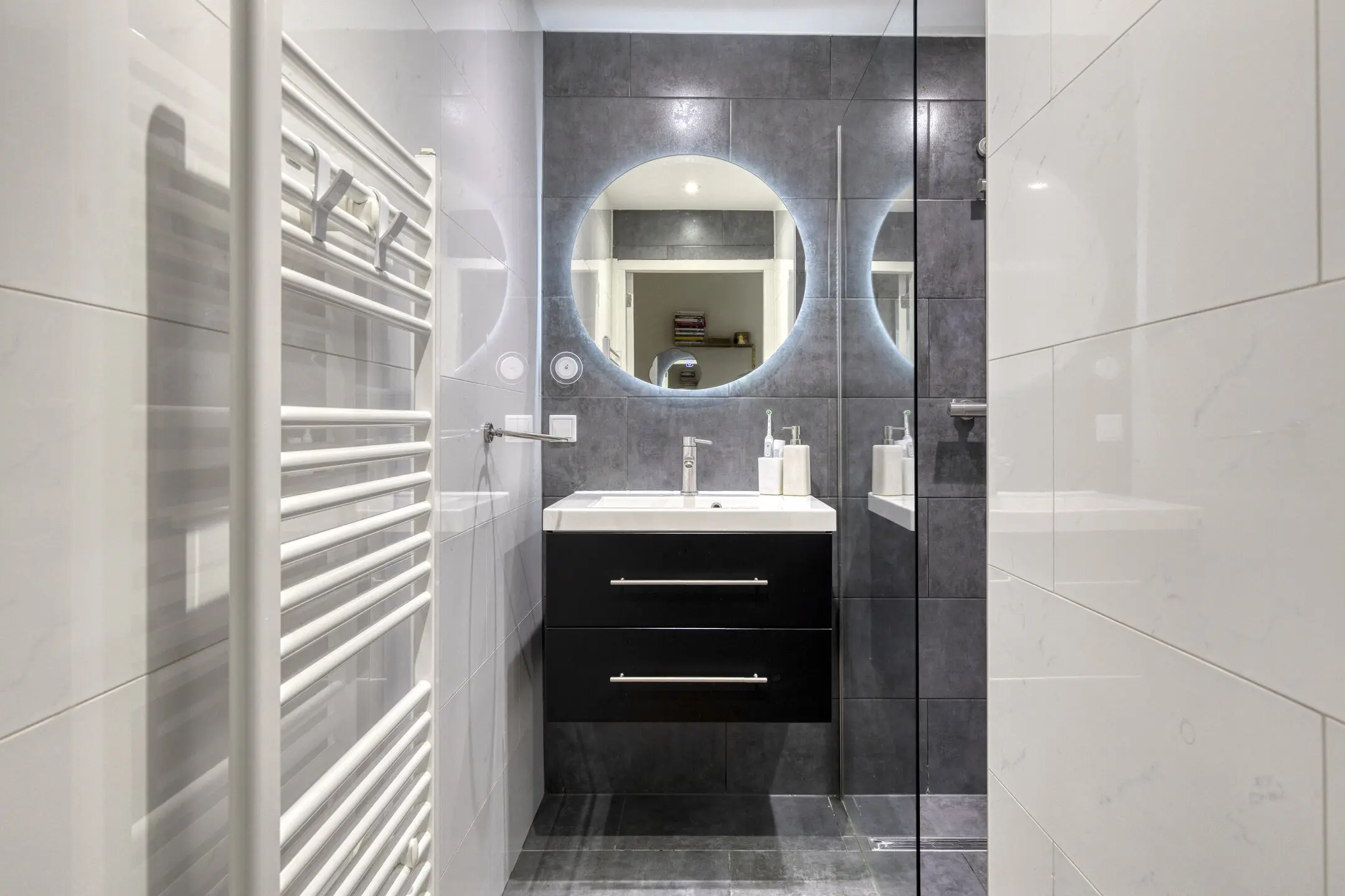 Badkamer: Compact maar efficiënt, met douche en wastafel.