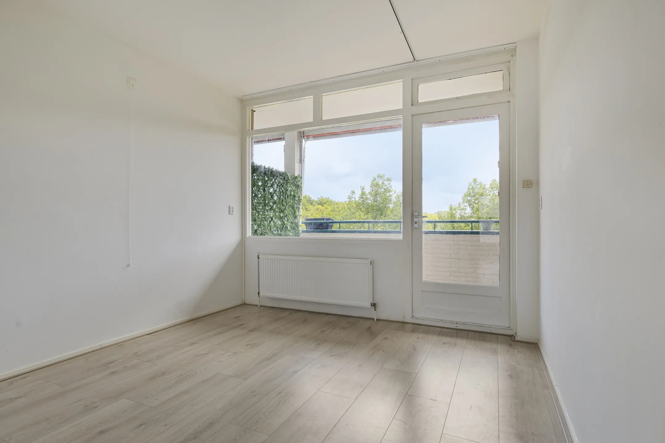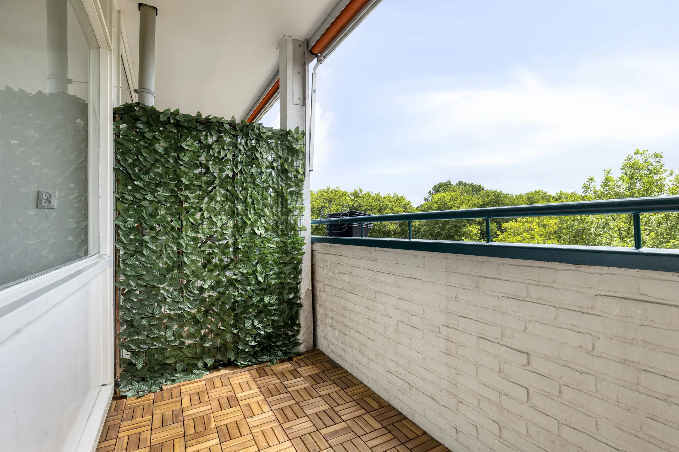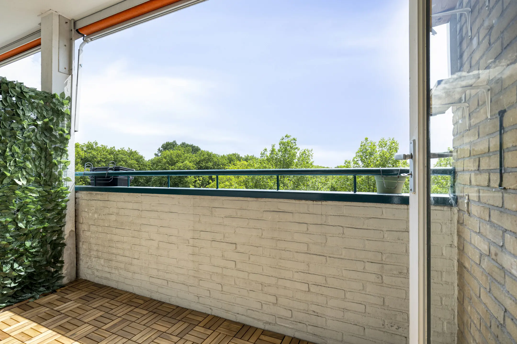 Het balkon is bereikbaar via één van de slaapkamers en biedt een fijne plek om buiten te zitten. In de woning zijn meerdere inbouwkasten aanwezig, die zorgen voor extra opbergruimte. Dankzij de grote ramen is er veel daglicht, wat de woning een prettige sfeer geeft.