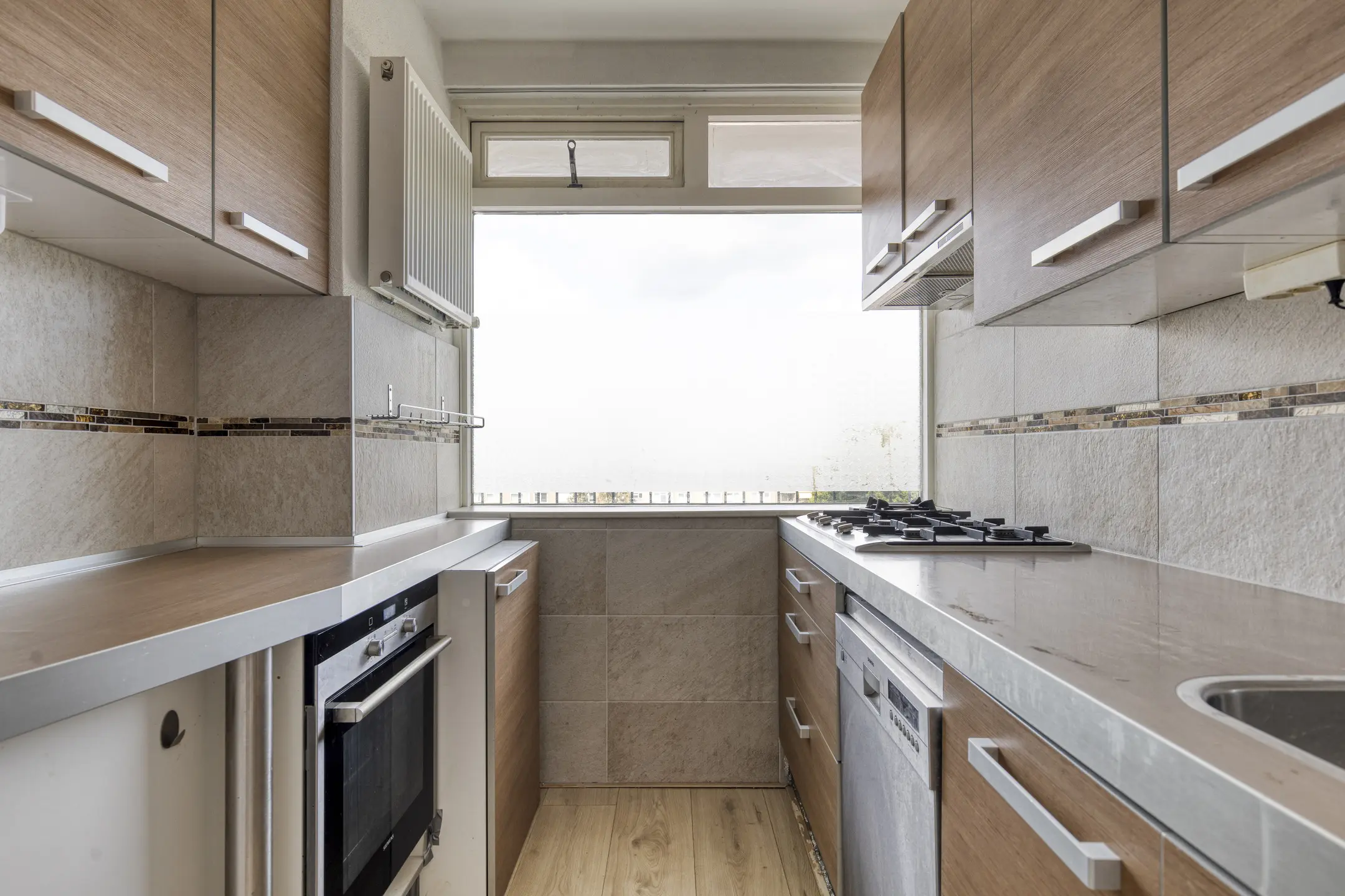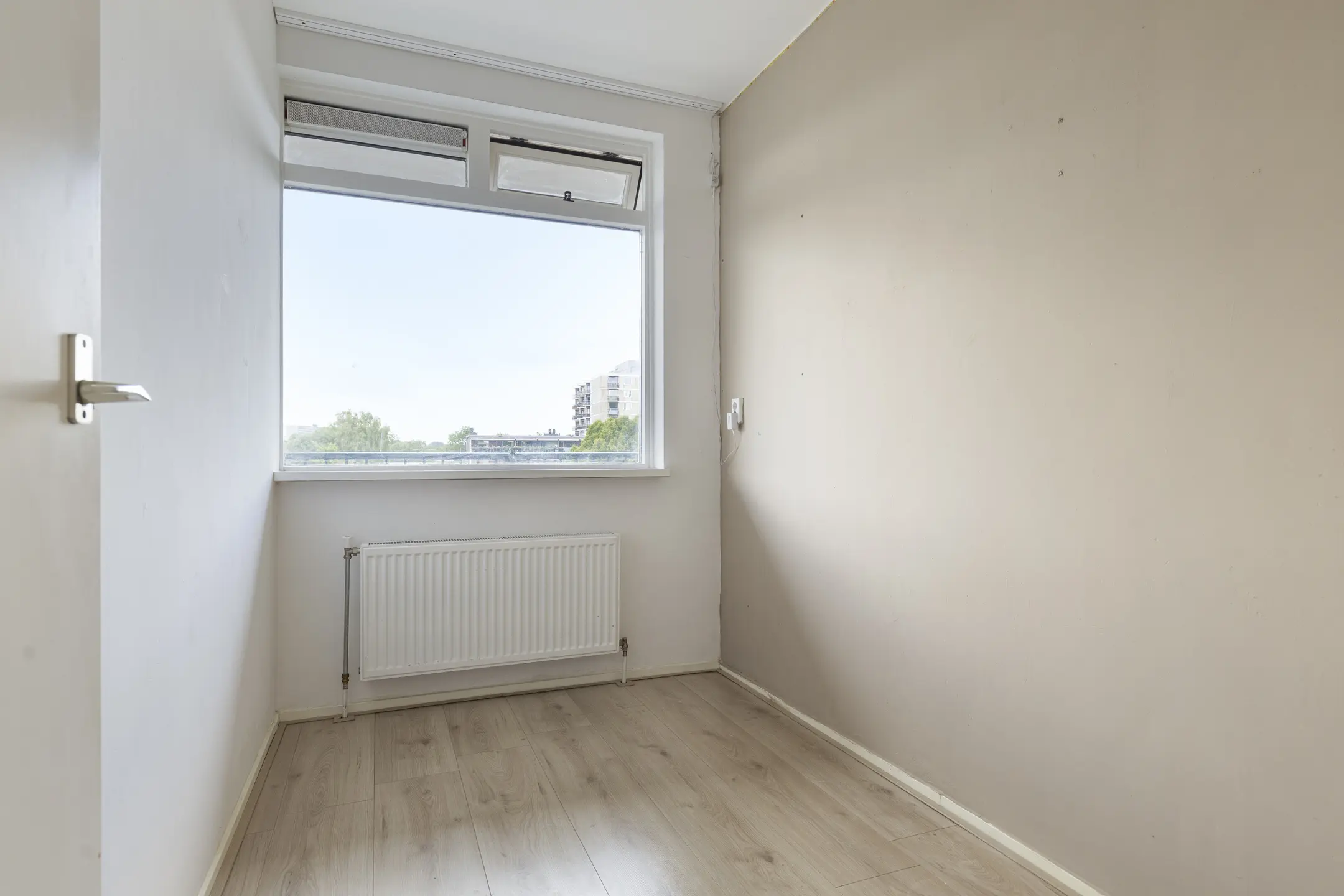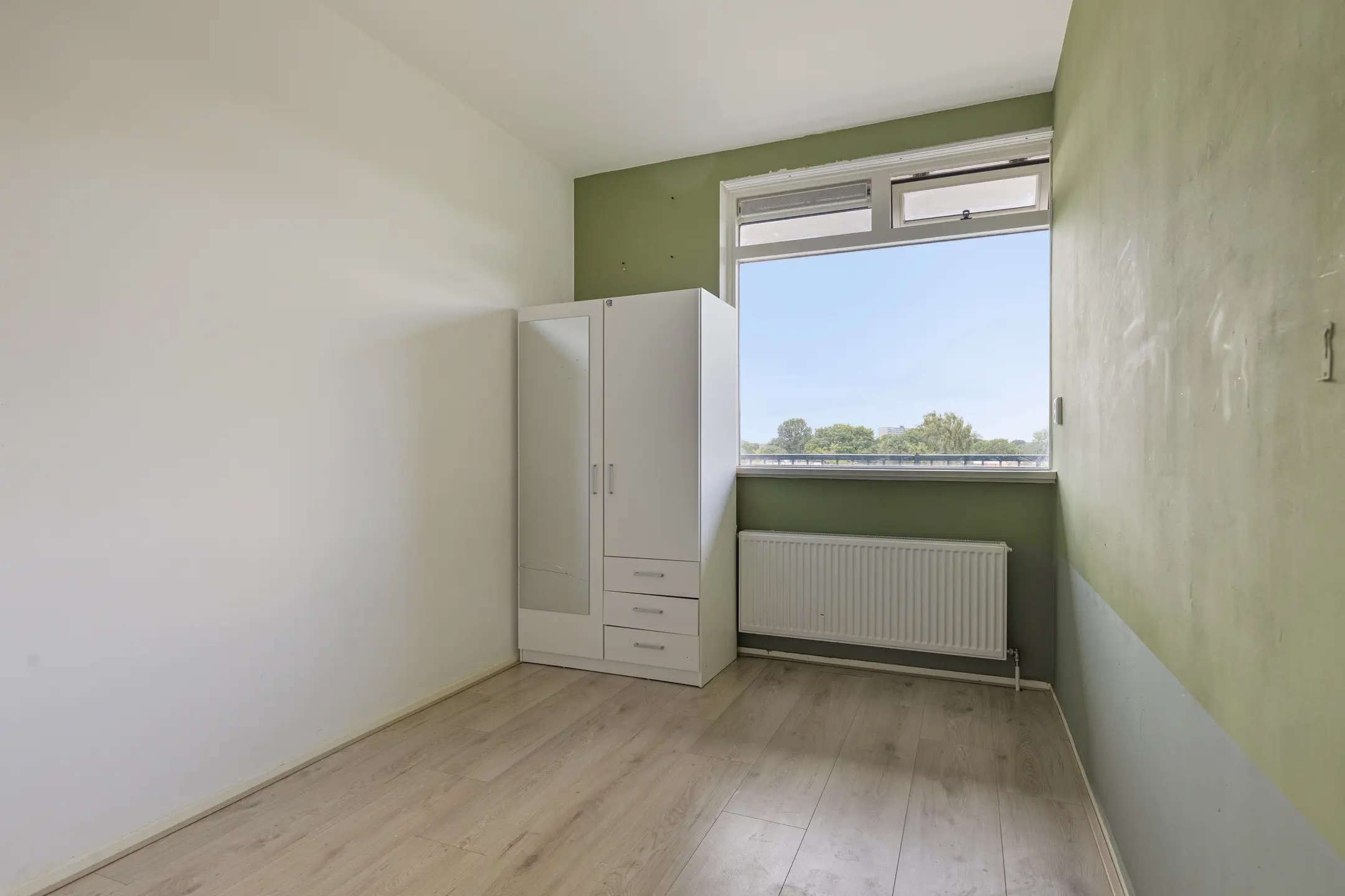 Het balkon is bereikbaar via één van de slaapkamers en biedt een fijne plek om buiten te zitten. In de woning zijn meerdere inbouwkasten aanwezig, die zorgen voor extra opbergruimte. Dankzij de grote ramen is er veel daglicht, wat de woning een prettige sfeer geeft.