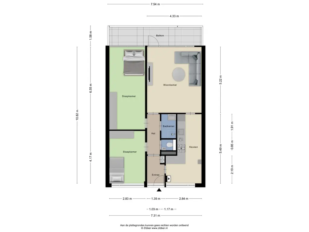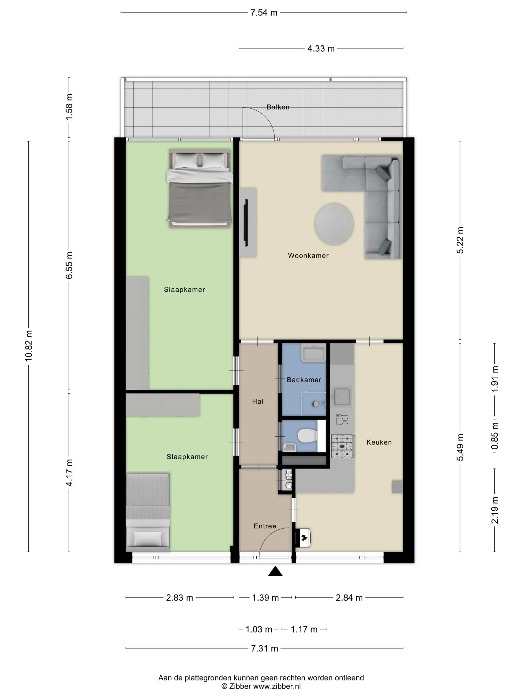 Twee slaapkamers, waarvan één met directe toegang tot het balkon